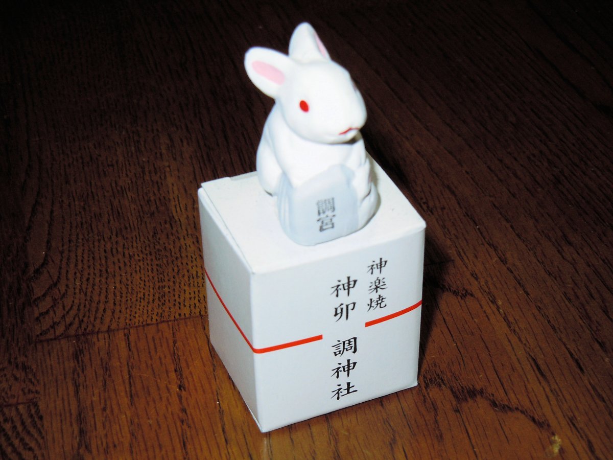 2cm角くらいの大きさで何となく置いとくだけで御利益(運が付きそう)がありそうだ。面白いことに、このウサギのフォルムは参道にあった狛ウサギにそっくりだ。耳が短く頭が大きい、独特の形だ。どちらかと言うとヌートリアかプレーリードックのようだ。少しふてぶてしさが篭るのだ。