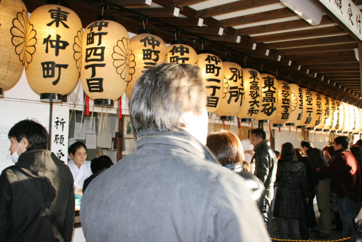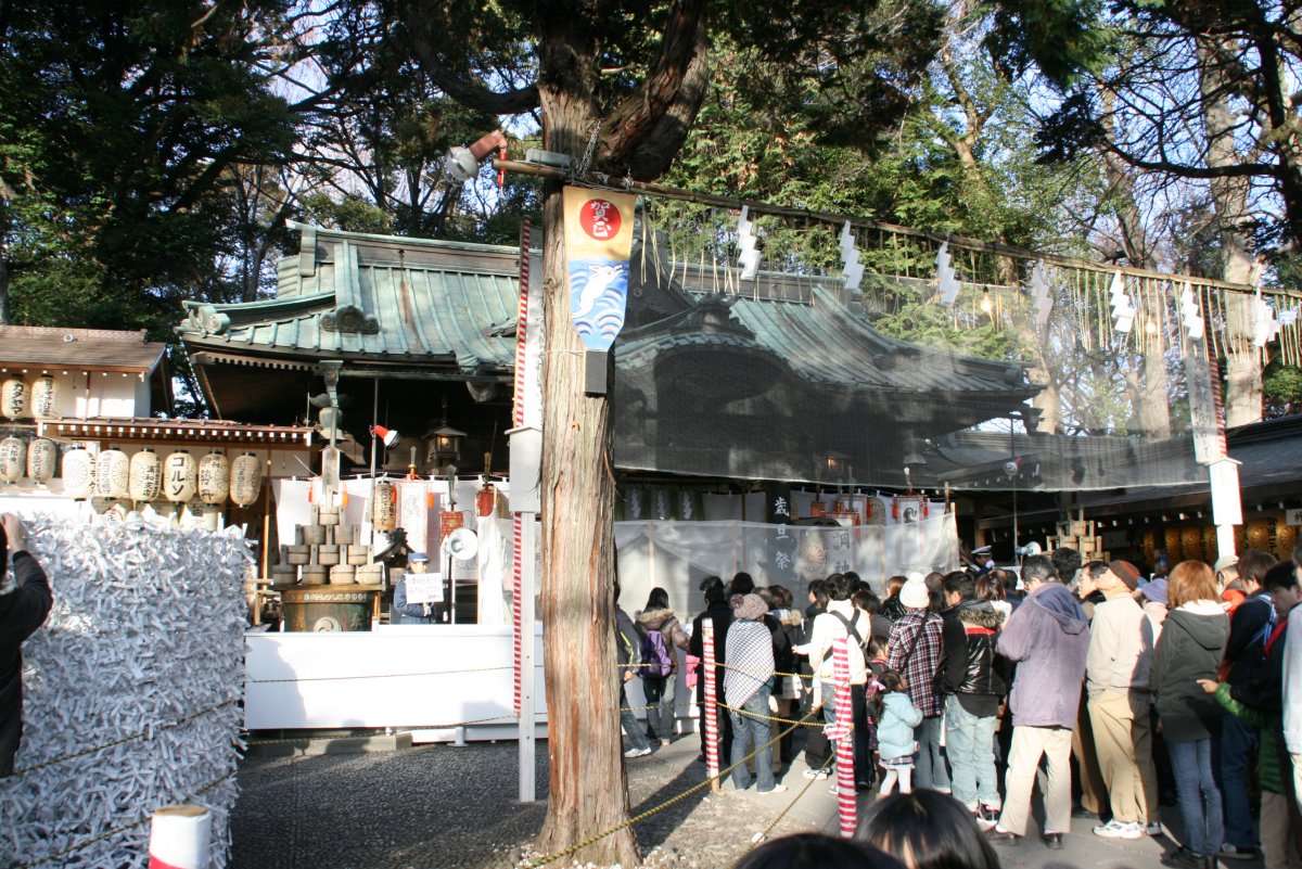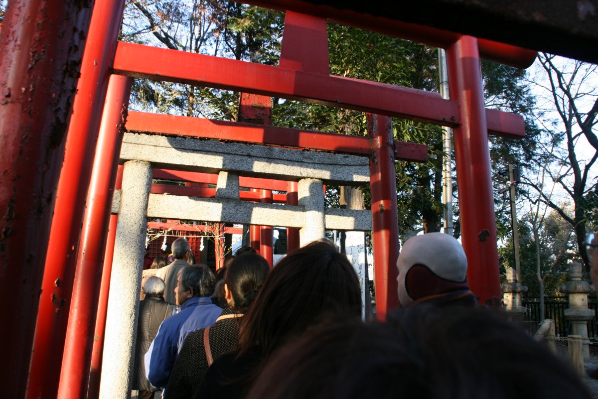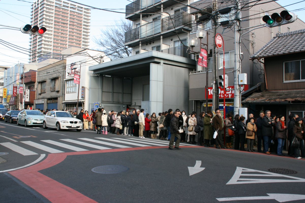 処は埼玉県浦和市、浦和駅から歩いて15分くらいの処。うさおたちは足腰が弱いから車で来ちゃったけれどね。しかし、着いて見て吃驚、なんだ、この人の波は。延々駅の方に数百メータに及ぶ人の列が・・・・。流石にすぐ並ぶ気は失せて、(いや、空いていれば境内の屋台で焼きそばを食べたり、おでんを食べたりと勝手に想像していましたので・・・)浦和の街の方へ食事をしに行くことになりました。
