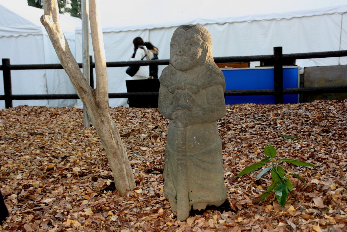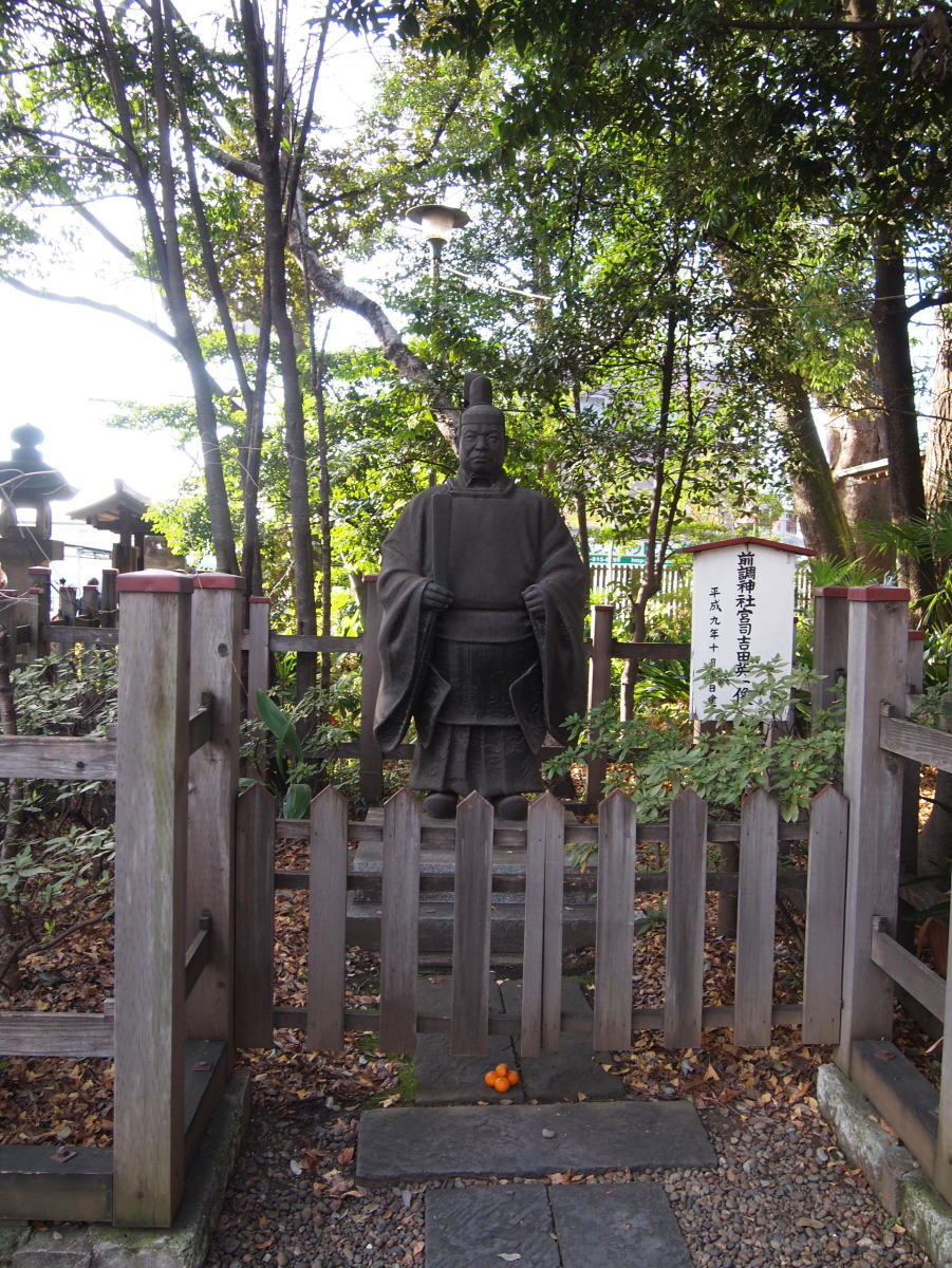 更に人の流れに乗っていると左側に衣冠束帯の像が見えます。有名な人?早速、Cacco遊軍隊に撮影してもらいます。