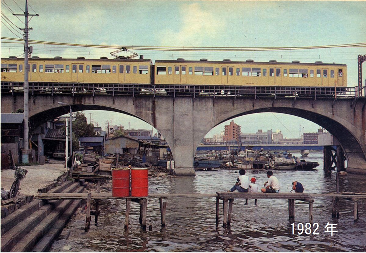 鶴見線国道駅を見に行く 鶴見川橋梁コンクリートアーチ構造 1982年