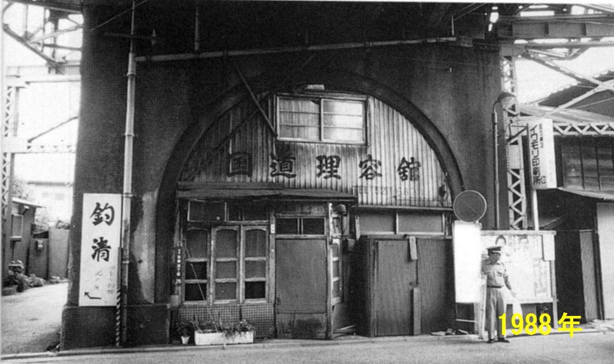 横浜市の情報誌、今は亡き「横浜」からの引用で、1988年の時のもの。国道駅の真ん中の通路を通って、裏に回った処に高架下を利用した床屋さんがありました。