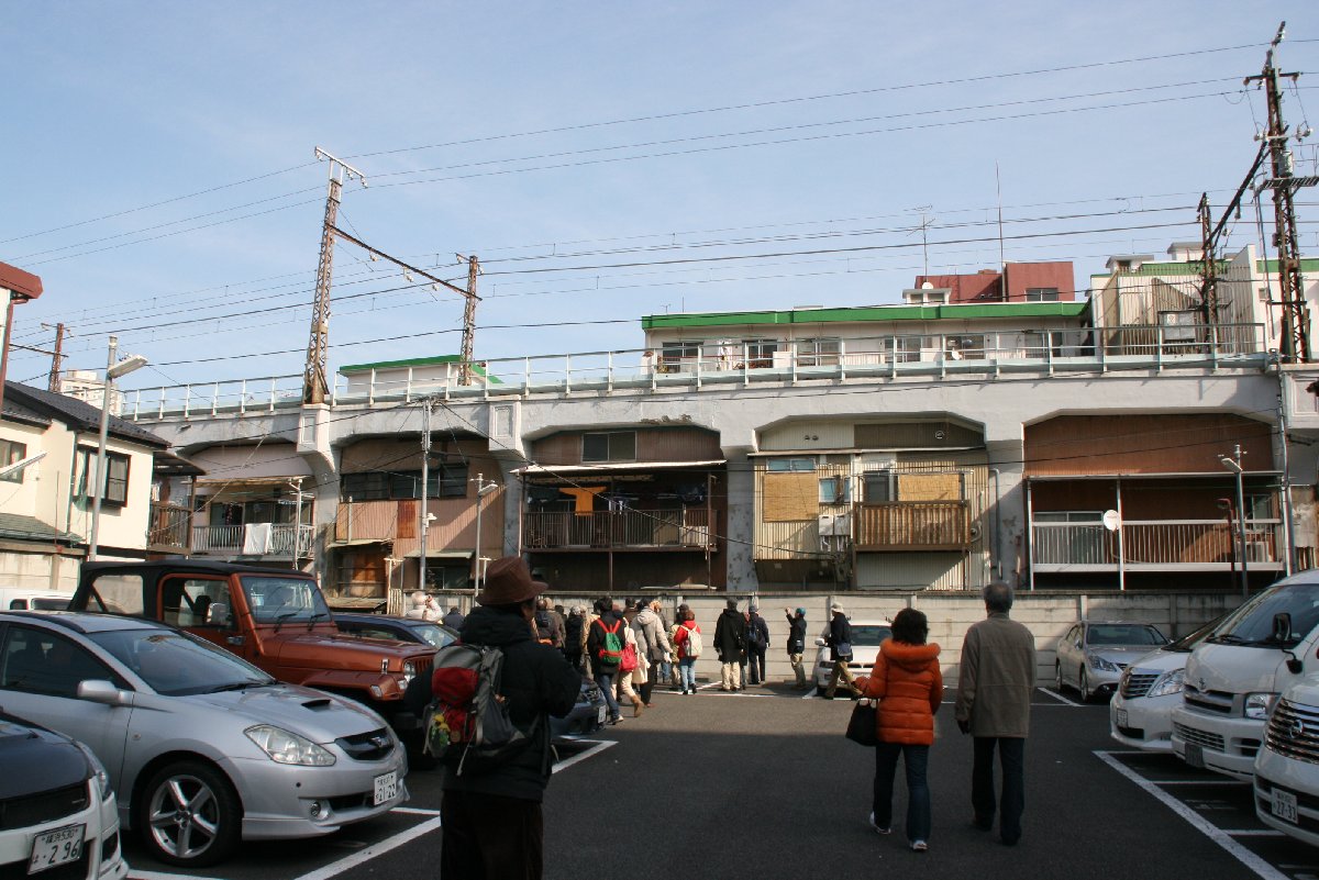 鶴見線国道駅を見に行く 熱く語る小野田氏 2012年1月28日