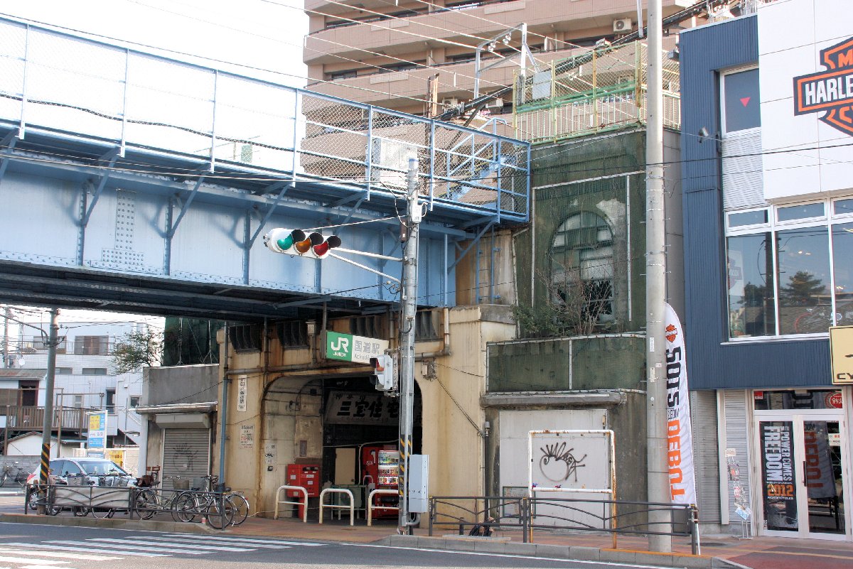 駅の反対側の入口は、左右にホームの分だけ構造物があり、これが住宅に使われているのだ。国道側の外観でも判るとおり、国道側の窓は破れており、何やら危ういものを感じさせます。こちらの生麦町側は人が住んでいるのか、今も健在のようで綺麗な外観を保っています。