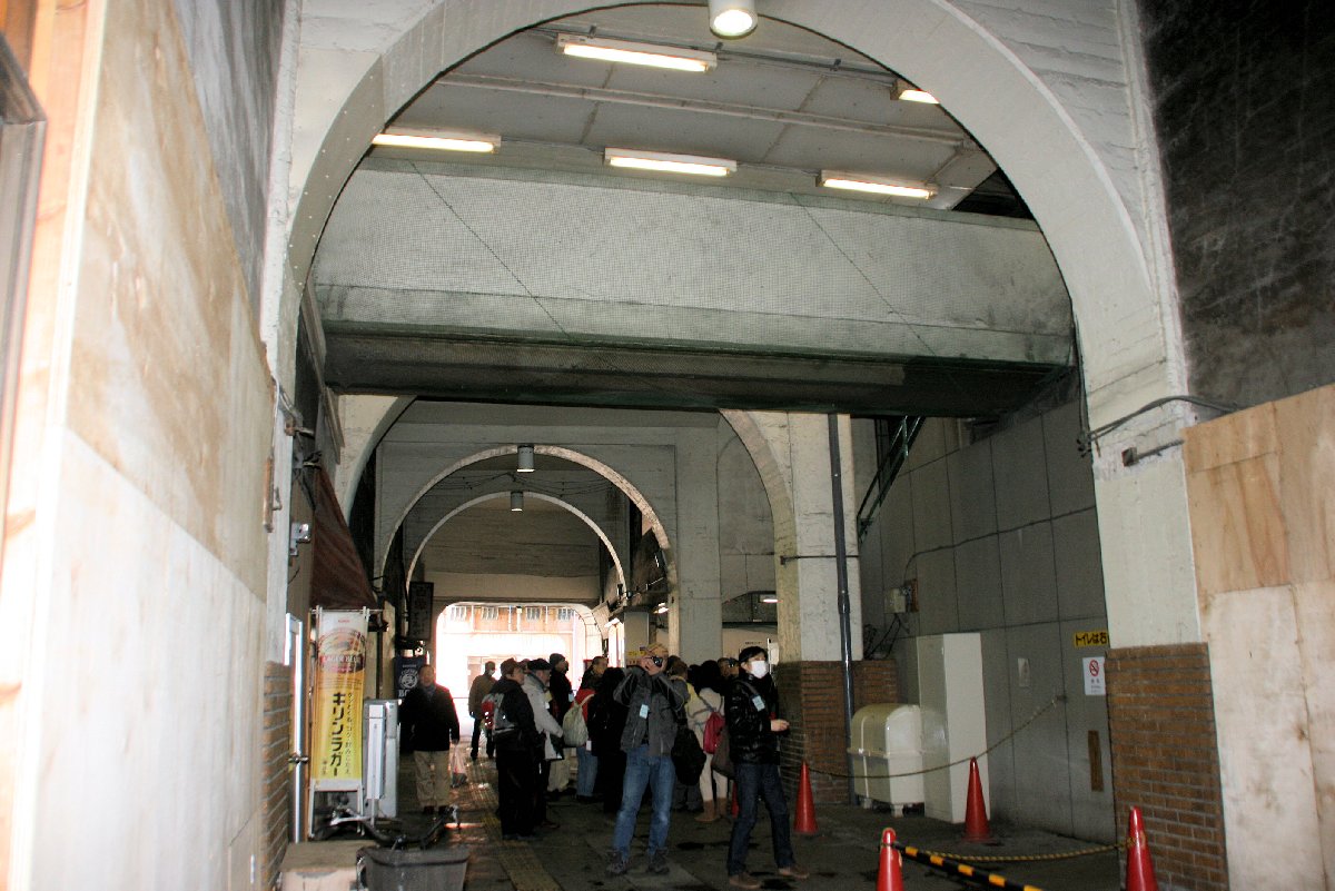 東横線の高島町駅(今はもうありません)の高架下もこのようなアーチでした。小野田氏に聞いてみると、設計者は同じ阿部美樹志氏のものだとか。高島駅を知っていたので、ちょいと得意になっていたが周りの反応は冷ややか。