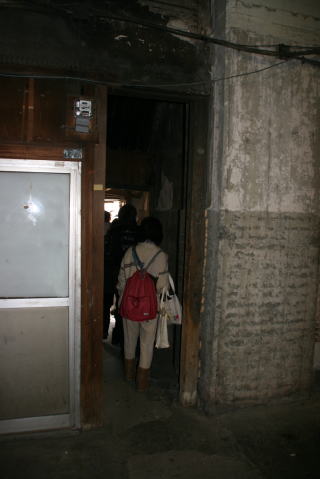 小野田氏はここで一旦外に出てみましょうと、高架下の家と家の隙間の路地を指し示しました。