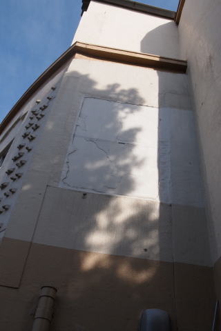 Cacco が気が付いたのだが、二階の窓はほとんど塞がれていました。確かにコンクリートの劣化は激しく、至るところで、鉄筋露出やコンクリートの剥落が生じていたからかな。