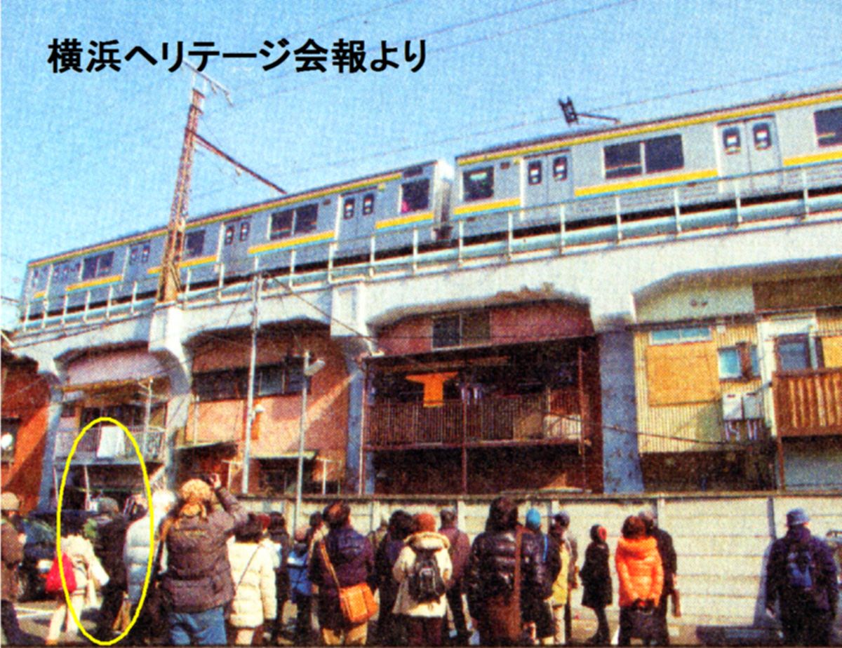 「横浜ヘリテージ」の会報に、この国道駅の取材の様子が載っており、この左端のグレーの帽子を被った女性がCacco だと、本人はえらく大喜びをしていました。けど、こんな小さな写真なのでほとんど判りません。