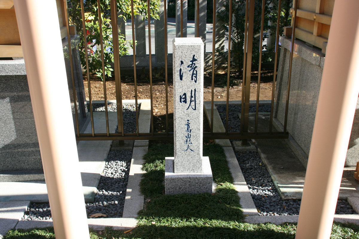 この神社が並ぶ一角に、陸上自衛隊市ヶ谷駐屯地で割腹自殺した三島由紀夫と森田必勝を祀った清明宮があります。「清明」と三島由紀夫自身の筆で揮毫されています。