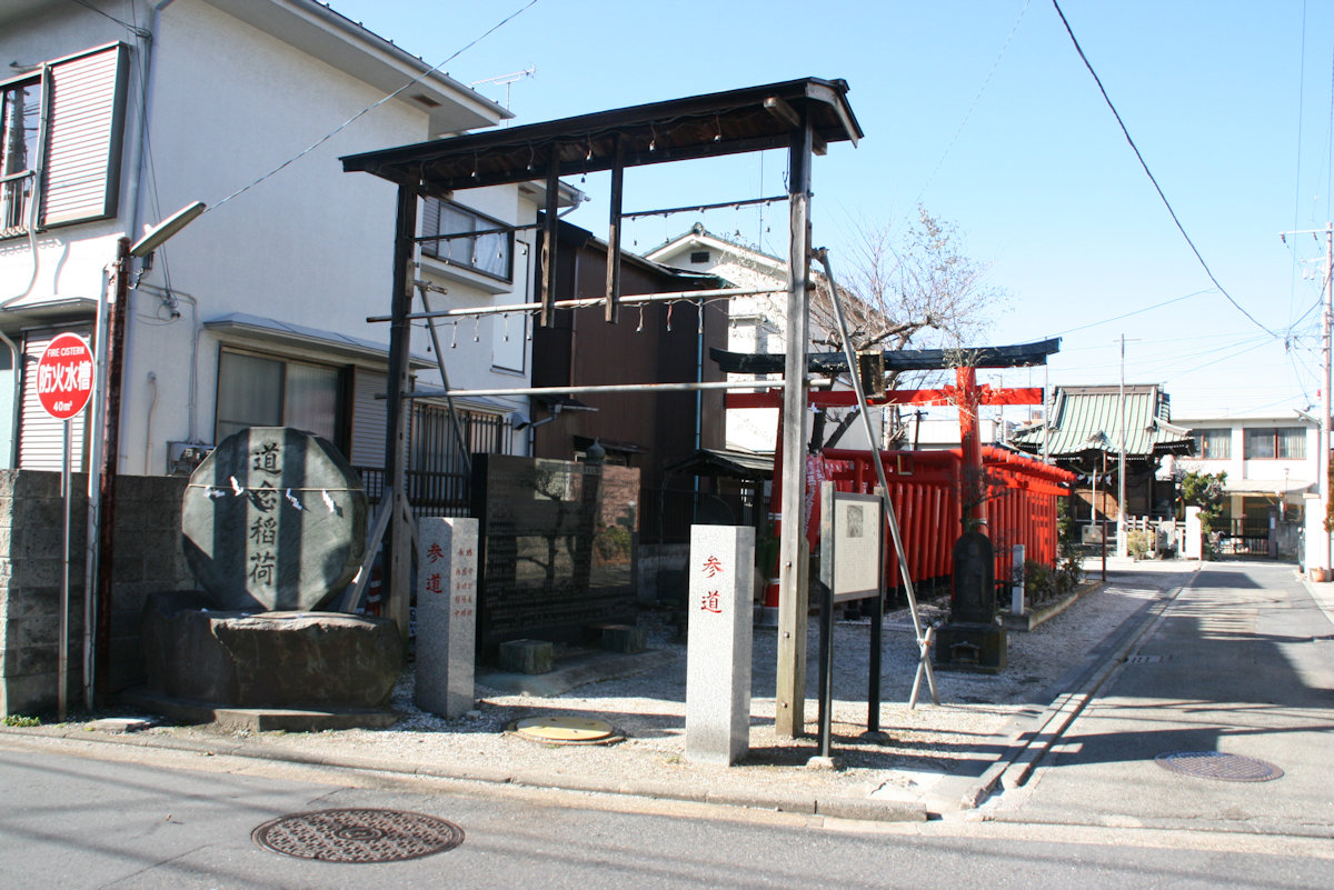 うさおは車の近くで、ウロウロしていると「道念稲荷」の鳥居が見えました。参道もある立派な神社さんでした。