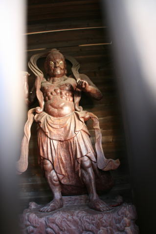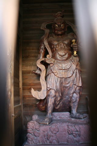 本堂の脇にある小さなお堂(祠?)に、これまた雨曝しの仁王尊が立っています。可哀そうなことに、片腕が朽ちて無くなっています。
