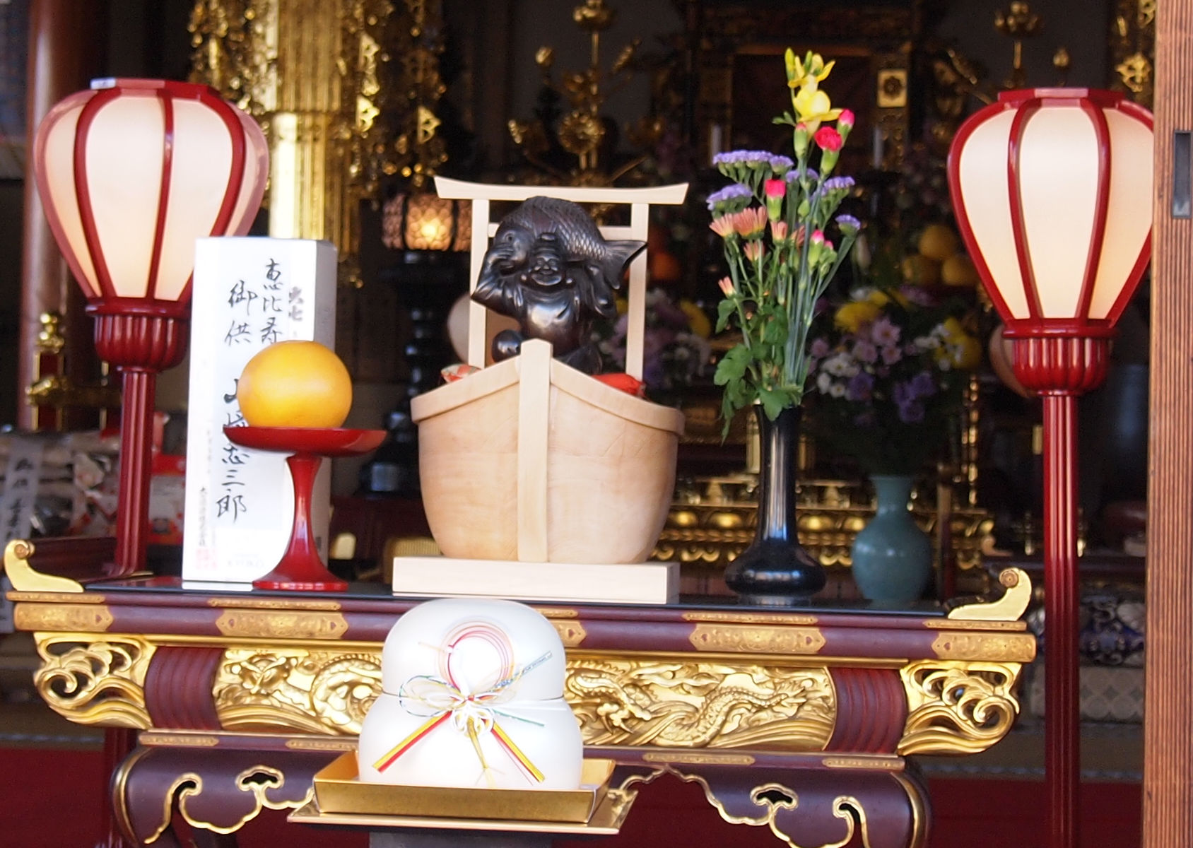 鶴見七福神 朱塗りの台座に鎮座する宝船 2013年1月4日