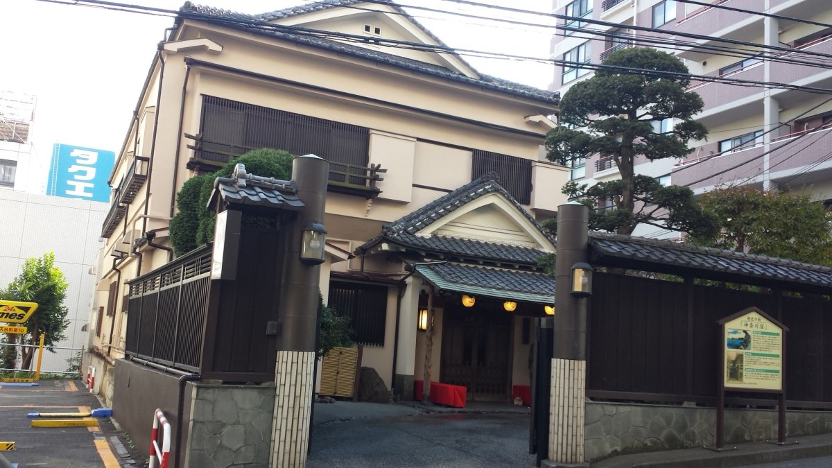 高島台の坂を下りると、旧東海道の道筋に、坂本竜馬の奥さんだったお龍さんが居た、旅籠「田中屋」が残っています。田中屋の歴史では「海の眺めを楽しむため、台町の坂道沿いにはたくさんの腰掛け茶屋が並んでいました。その様子は、広重による「東海道五十三次」の神奈川・台之景にも描かれています。その絵をじっくり眺めますと、坂の上から三軒目に「さくらや」という看板の文字が読めます。これが、現在の田中家の前身です。(中略) 幕末の偉人、坂本龍馬の妻おりょうは、龍馬亡きあと、ここで住み込みの仲居として勤めてくれていました。月琴を奏で、外国語も堪能で、物怖じしないまっすぐな性格が、ことに外国のお客様に評判だったといいます。横須賀に嫁いでいき、田中家をやめたあとも、ひいき客からいつまでも話題に上ったということです。