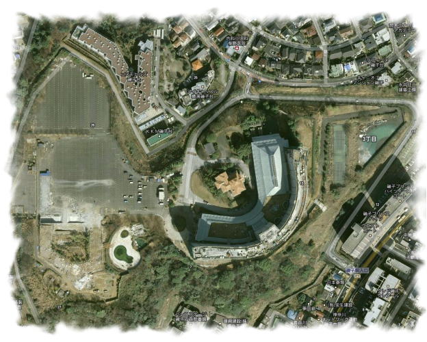 さて、磯子の駅を降り山側を見上げると、半円形にそびえていた磯子プリンスホテルが無くなっています。その別邸は、ホテルに包まれて建っていました。