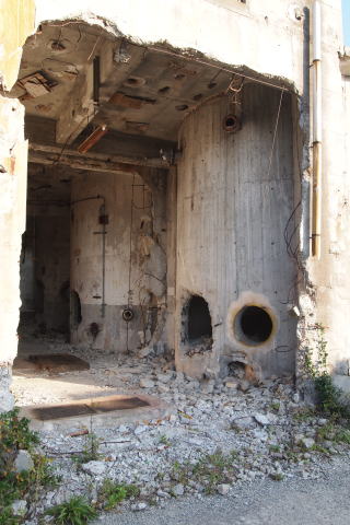 高萩の製紙工場跡 前の棟屋の基礎が残っている 2013年11月16日