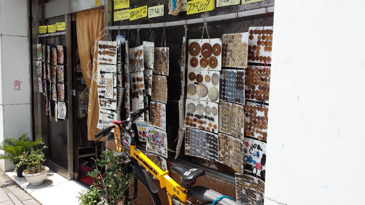 隣に「富士ボタン」と言うお店があり、大きなボタンをショウウィンドウに飾っていました。