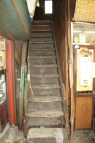 でも、2階にも商店街があったことは、このあたりの天井の隙間からも見て取れます。化粧品屋さんや八百屋さん(八百屋さんが2階にある?変だな)