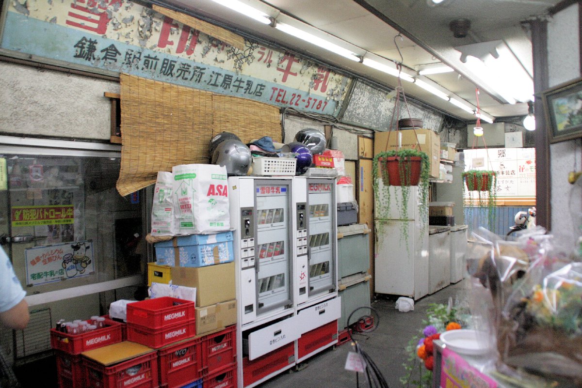 鎌倉丸七商店街 (2014年7月30日) 「江原牛乳店」レトロな瓶入りの牛乳を売っています