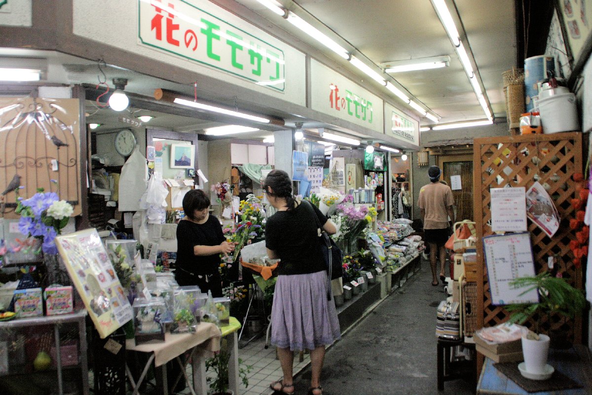 鎌倉丸七商店街 (2014年7月30日) 「花のモモサワ」プランターの花も売っています
