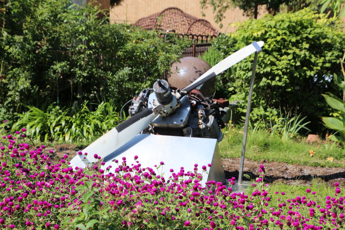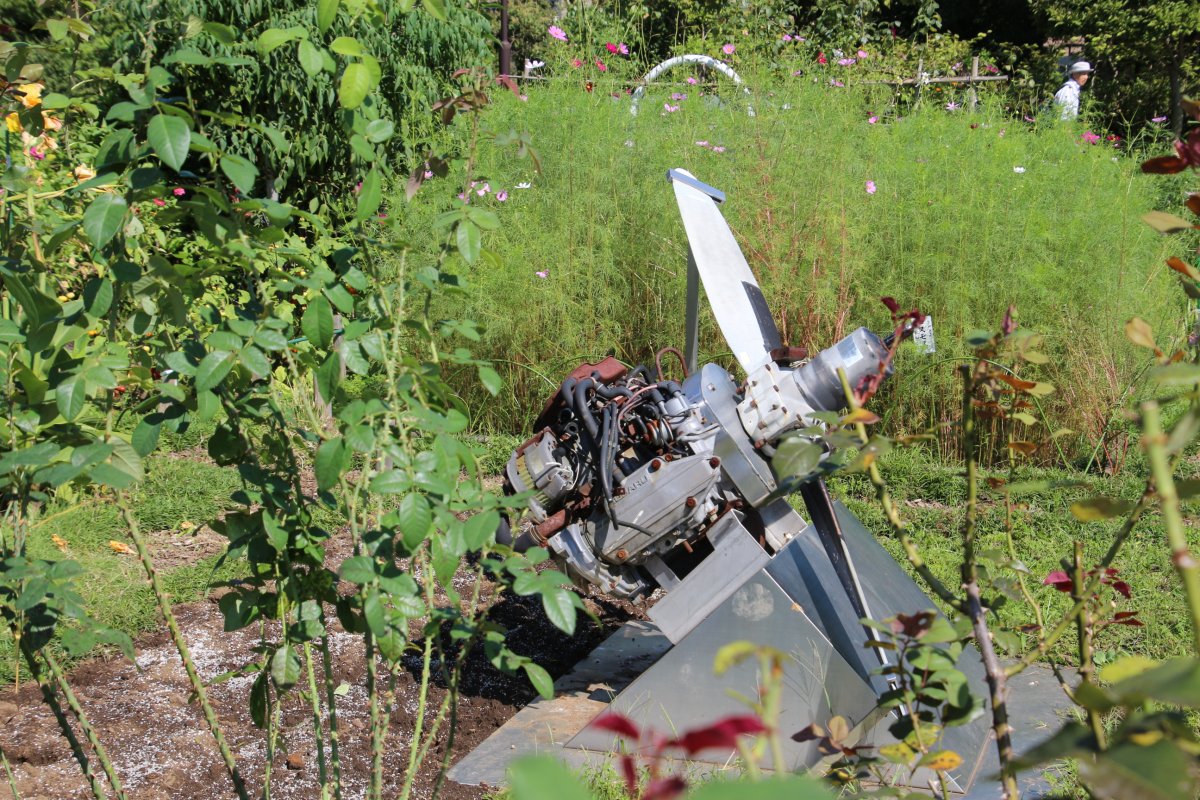 そんな中、花壇の中に、航空機エンジンが飾られていたのはご愛嬌でしょう。