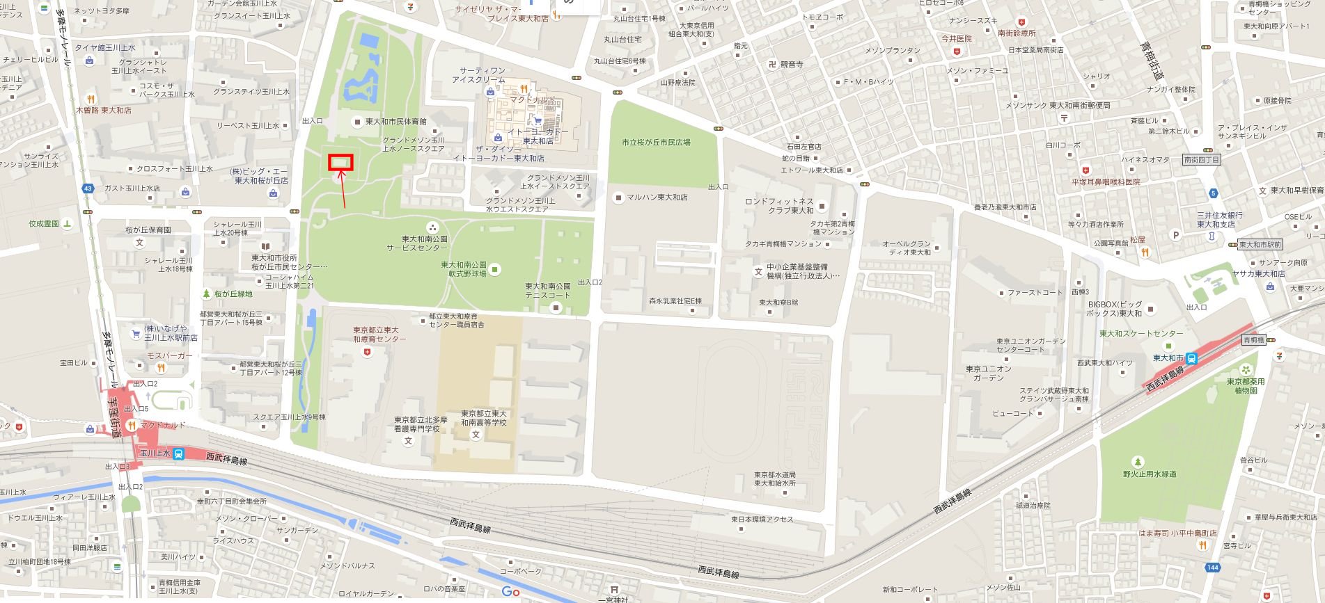 旧日立航空機立川工場変電所跡 地図 (2015年9月20日) 赤の□の処