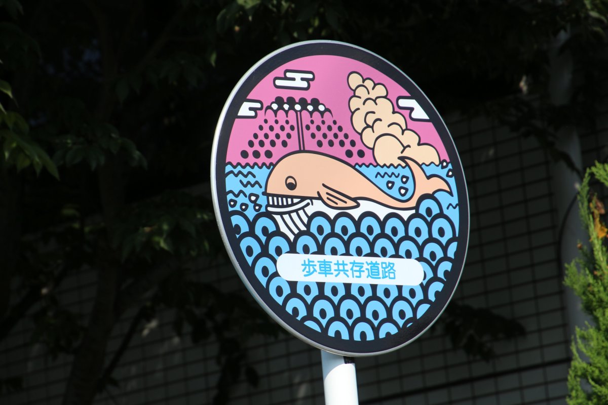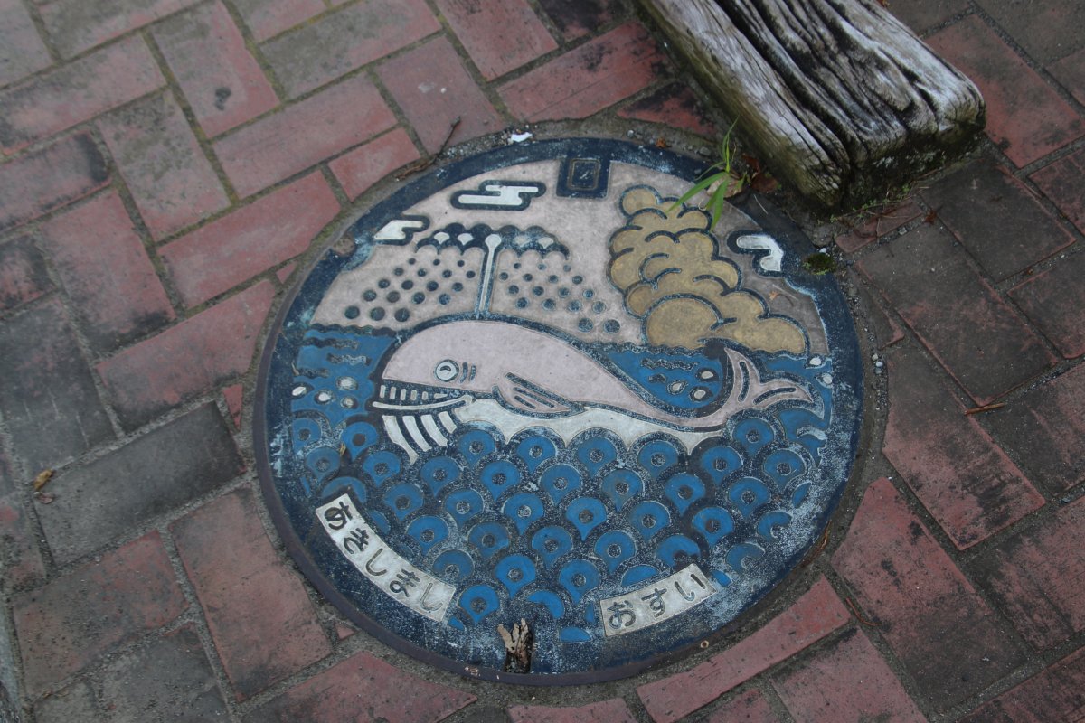 中神陸軍航空工廠線と給水塔 マンホールの蓋も鯨 (2015年9月20日)