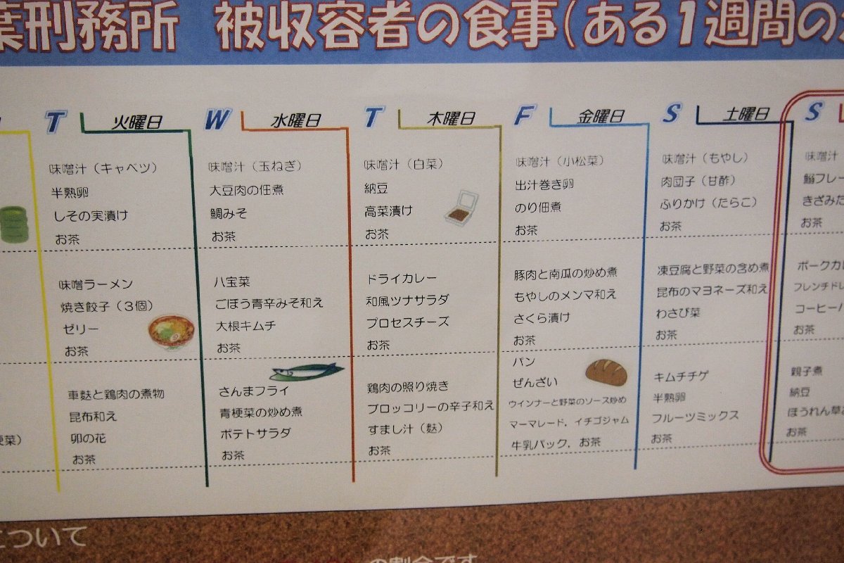 千葉刑務所 一週間のお献立 (2015年11月15日)