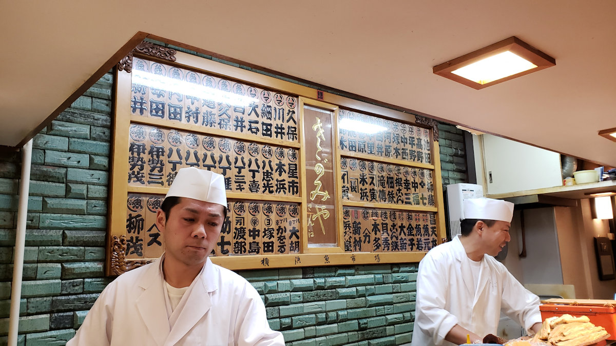 横浜市中央卸売市場 さがみや寿司店の店内 2018年12月15日