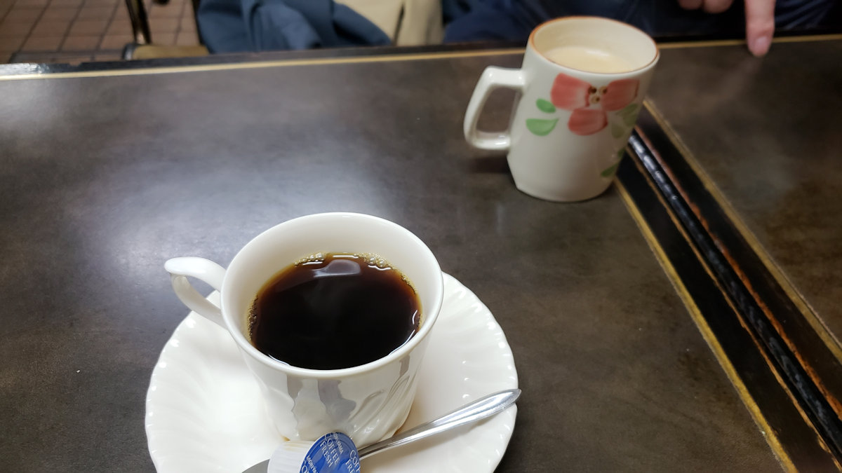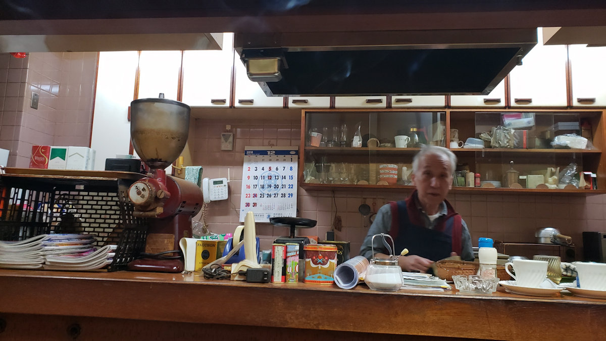 年季の入ったコヒーミルや煙草で煤けた店内、いかにも市場の中の喫茶店です。一時間くらい居ましたか。