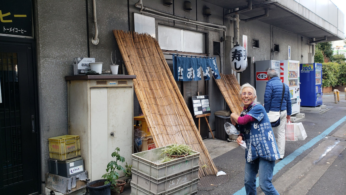 横浜市中央卸売市場 さがみや寿司店 手前の方は喫茶店のママ 2018年12月15日