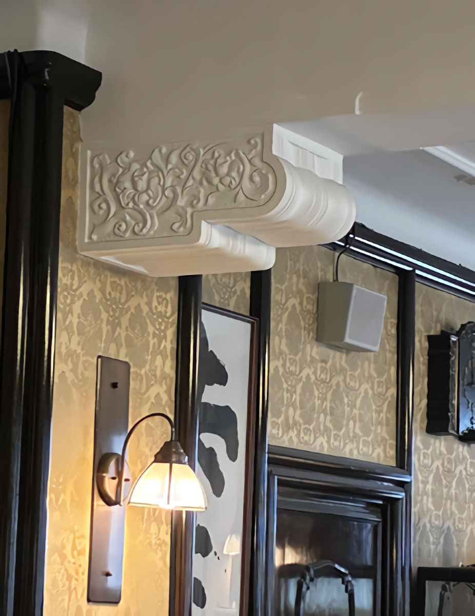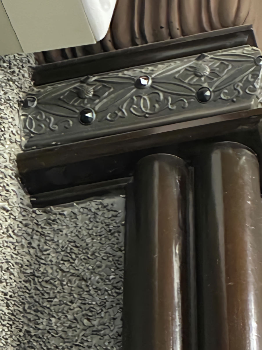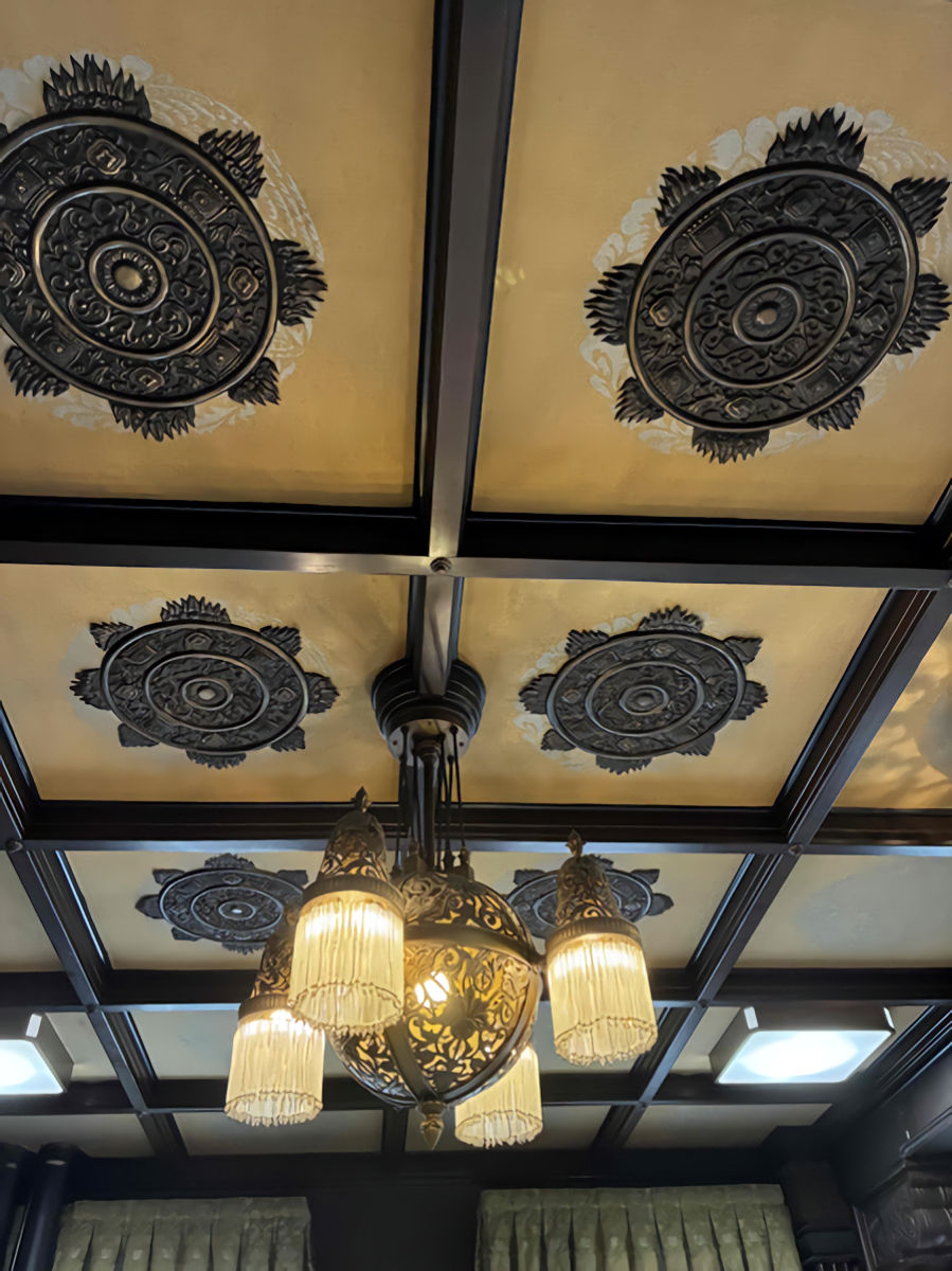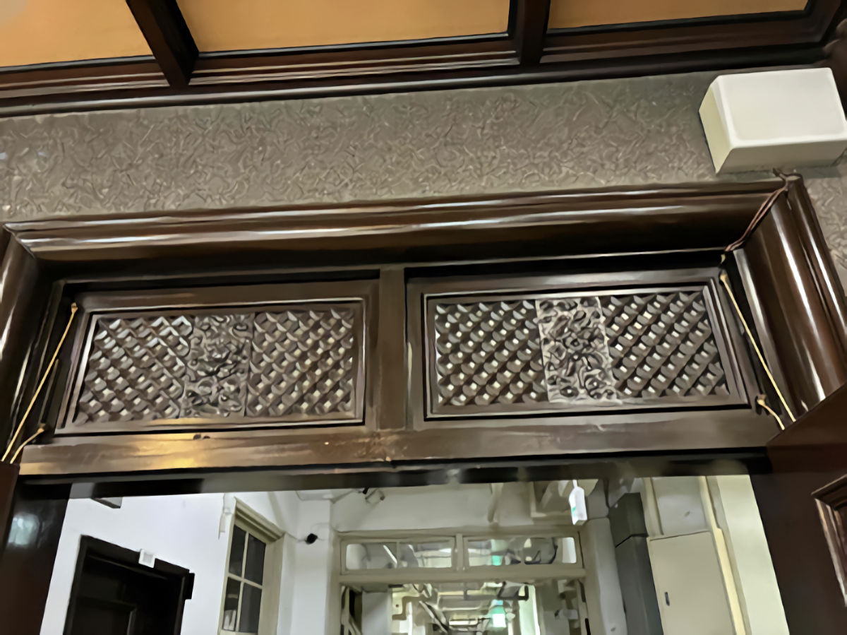 玄関ホールに入ると、宝相華(ほうそうげ)のモチーフが飾られています