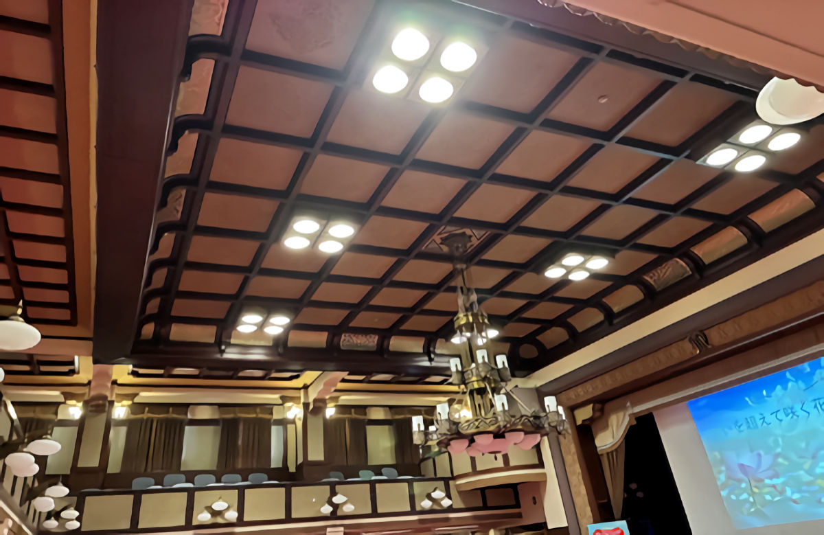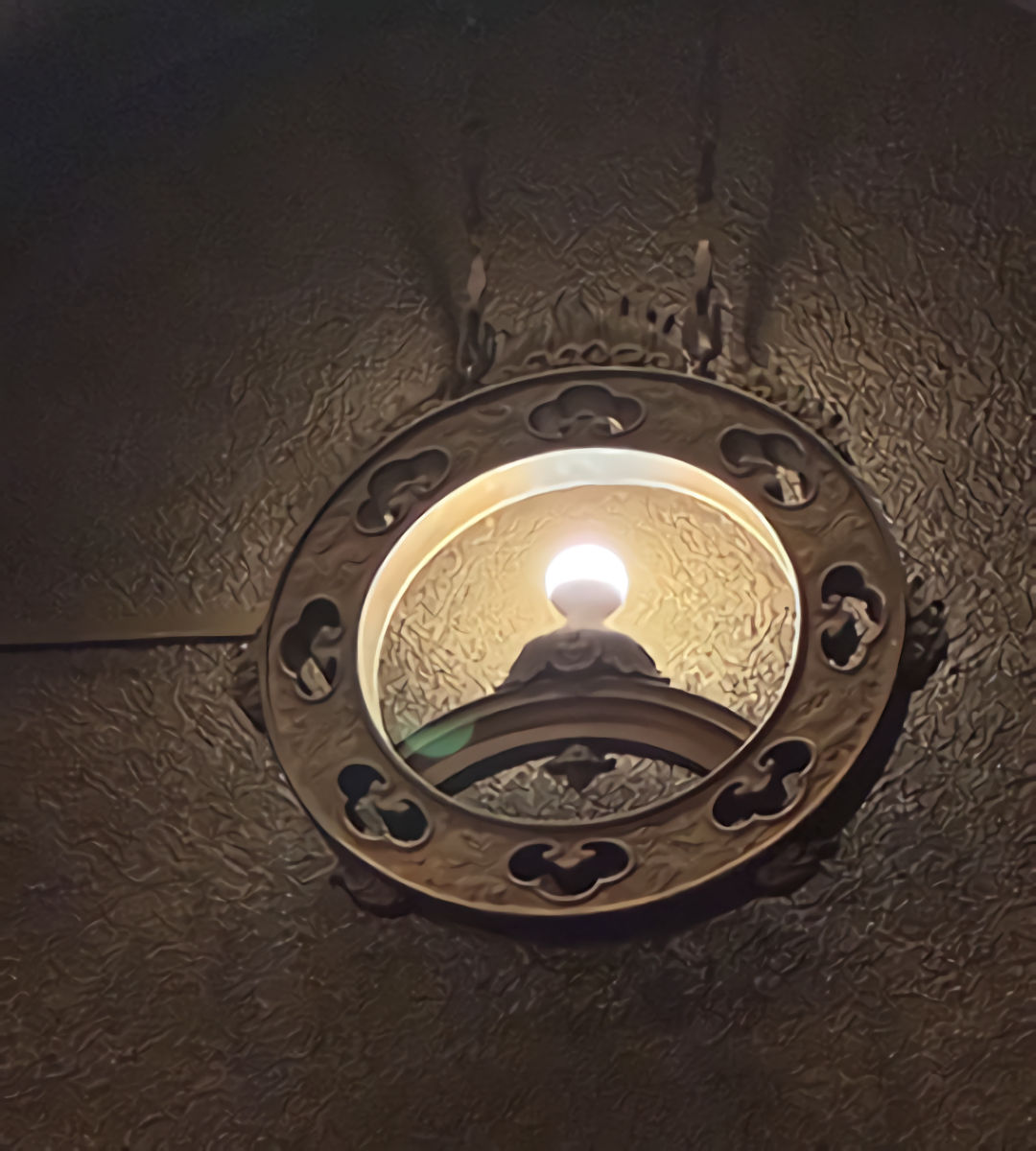 たくさんのひとがいたので、天井と照明だけ写してすぐに出ました