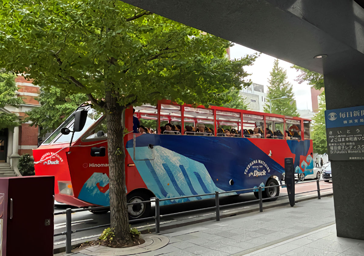 お茶をしていたら、目の前の道を水陸両用車が走って行きました