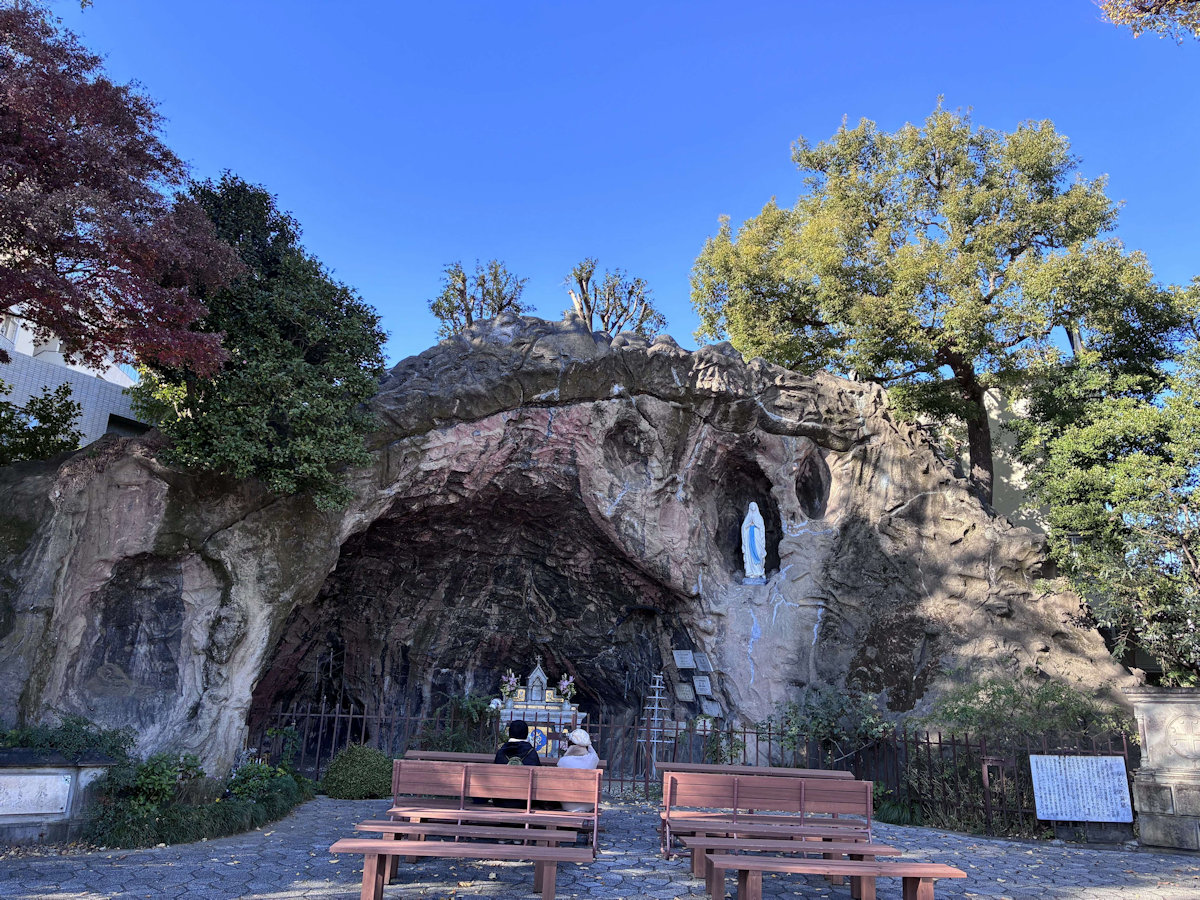 裏にまわると、ルルドの洞窟と呼ばれる場所がありました